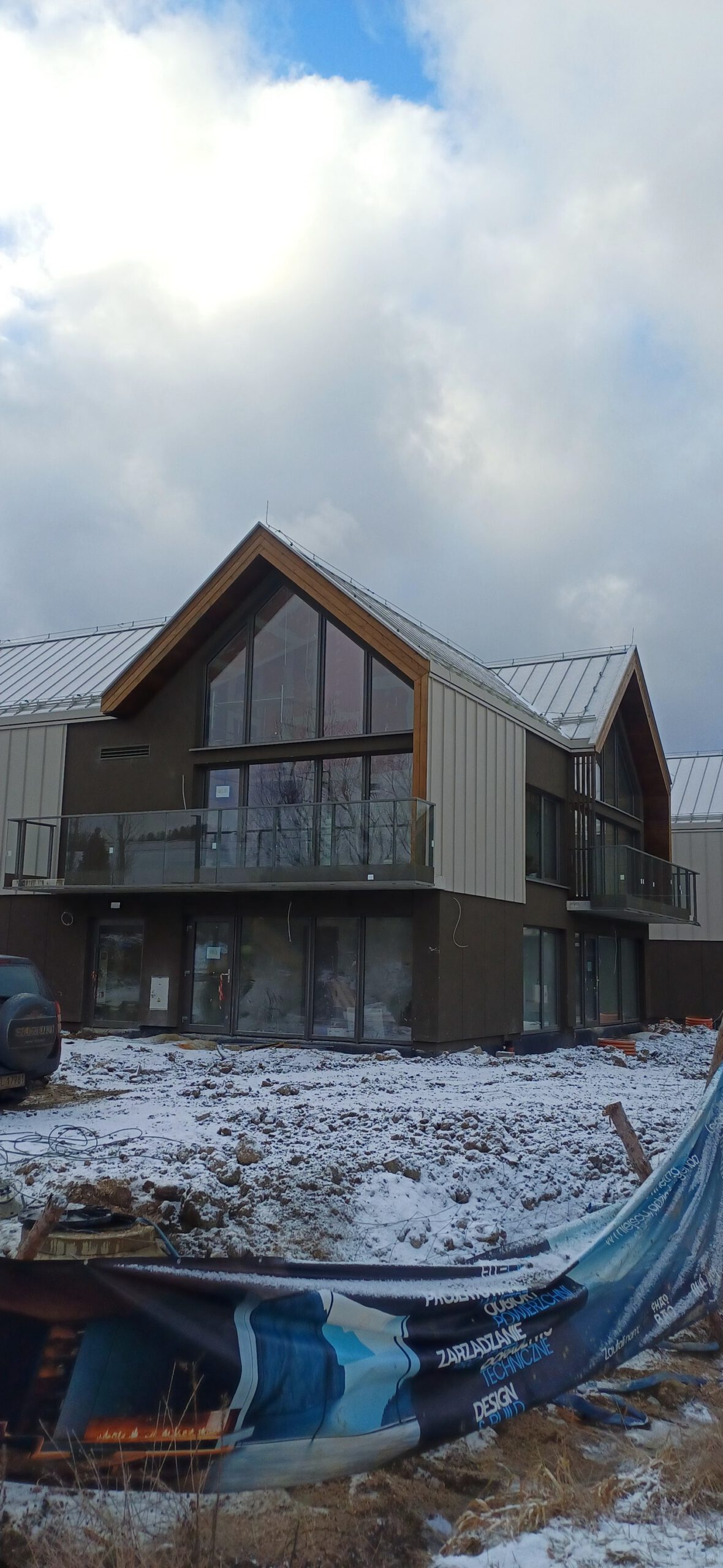 Kompleksowe wykonanie balkonów – balustrady szklane w kolorze antracyt
