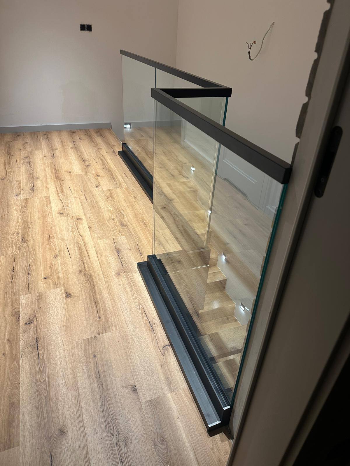 Balustrada szklana w profilu aluminiowym – wykończenie czarny mat